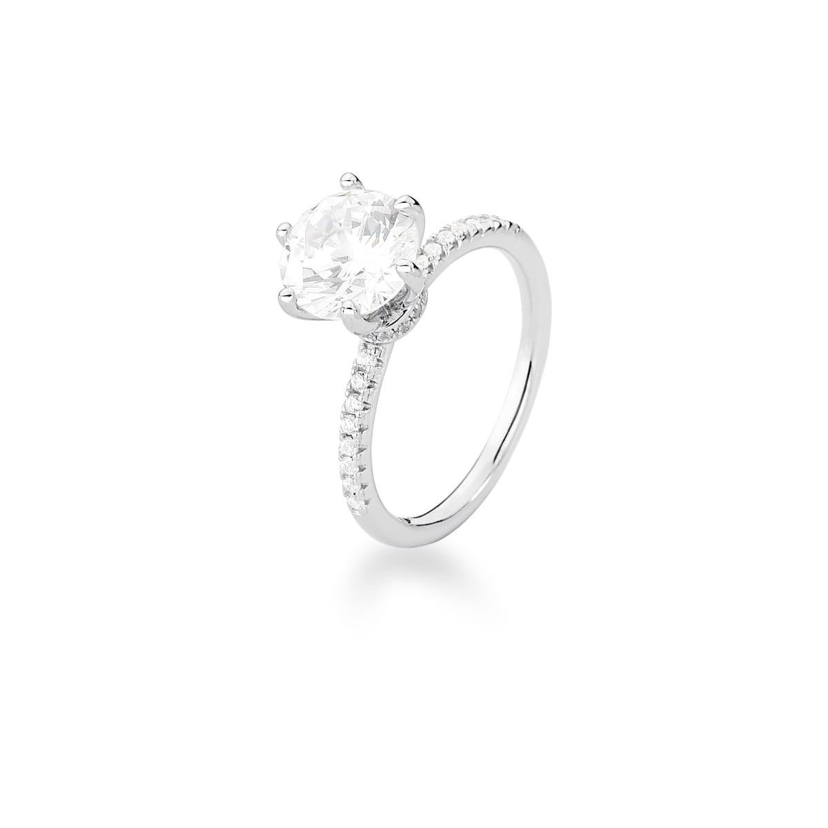 Anel Solitário com Cristal Redondo em Prata Rodinada