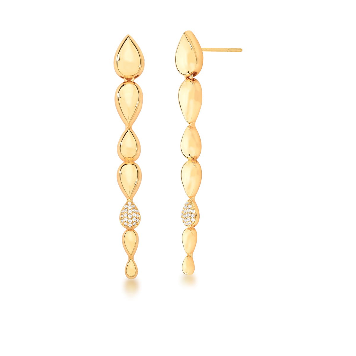 Brinco Pêndulo em Gotas Lisas e Cravejada Banhada a Ouro 18 k