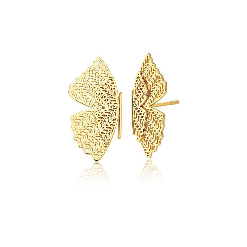 Brinco de borboleta vazado e liso banhada a ouro 18 k