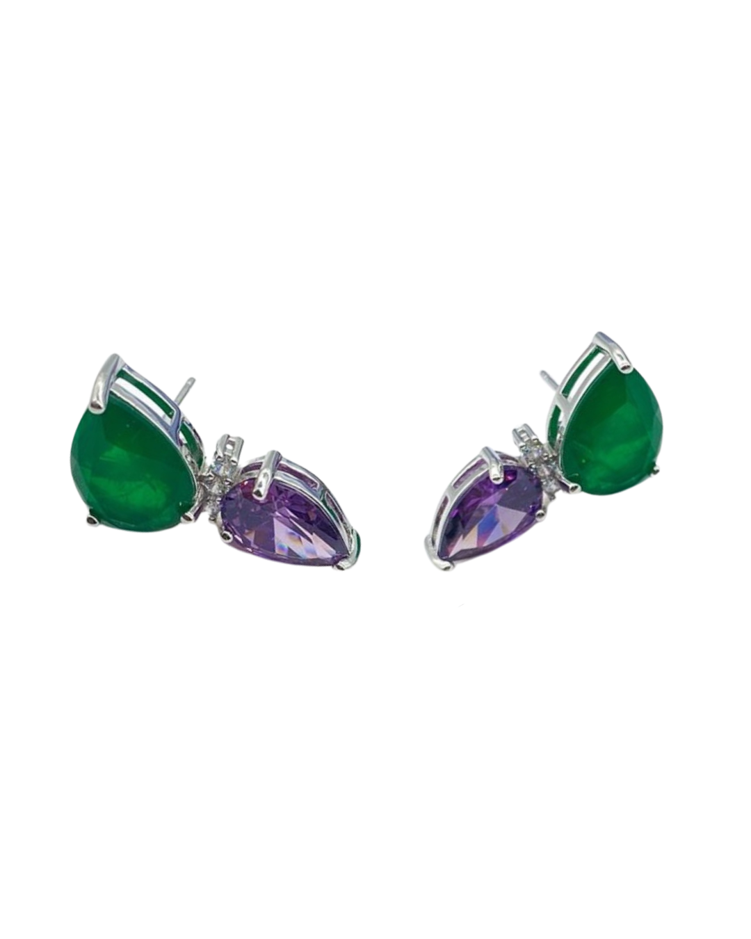 Brinco earcuff com pedra de esmeralda e tanzanita banhado a ródio branco