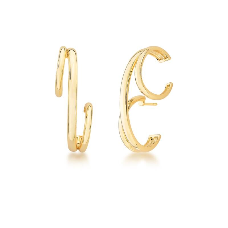 Brinco earhook curvo para prender no meio da orelha e banhado a ouro 18 k
